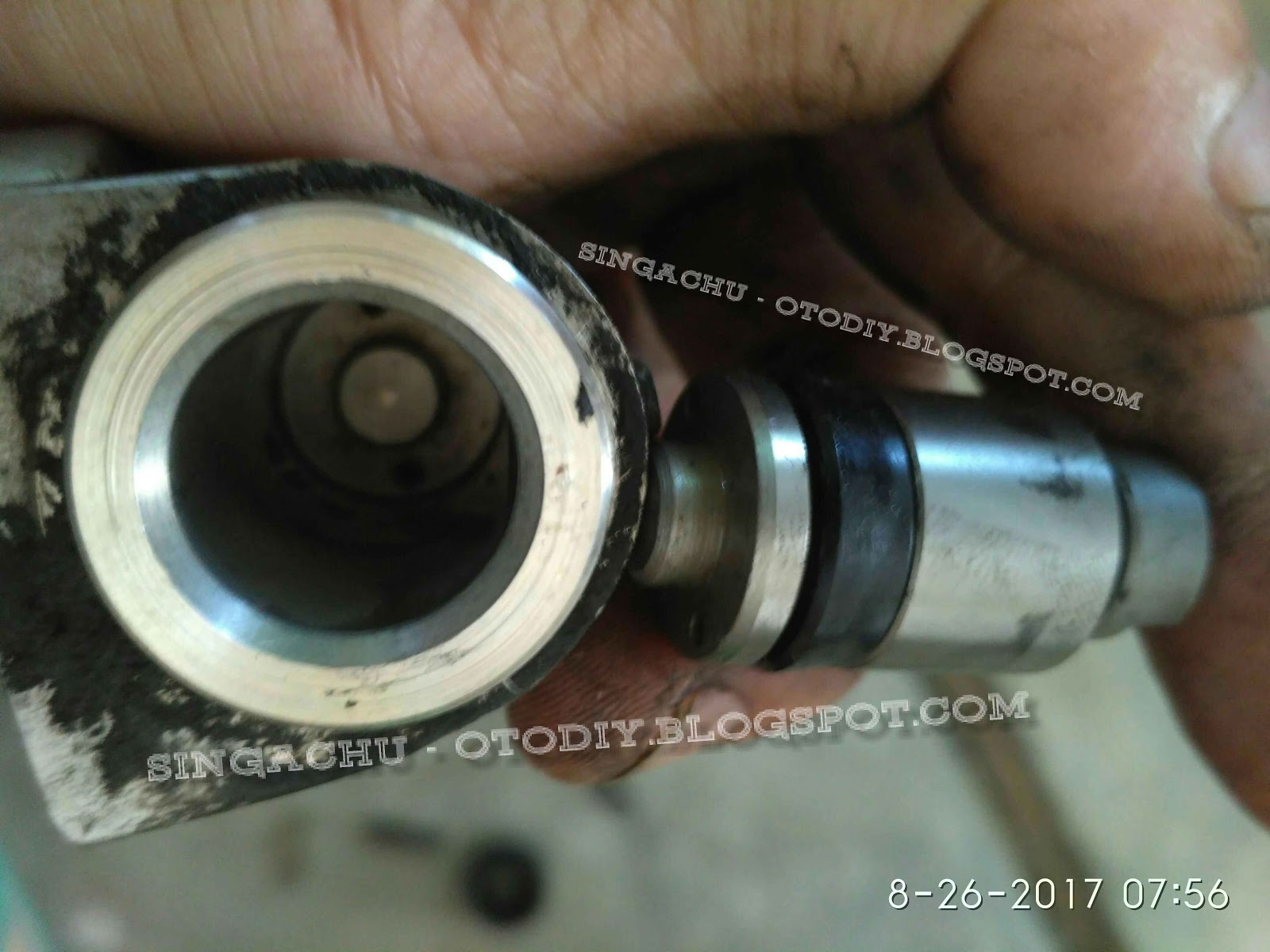 - Kendorkan lagi baut pipa jikalau tadi sempat dipasang ulang. Selanjutnya keluarkan wheel cylinder dari arah dalam tromol keluar. Geser bab belakang dulu keluar supaya nepel bleeding bsia lewat lubang yang ada.
